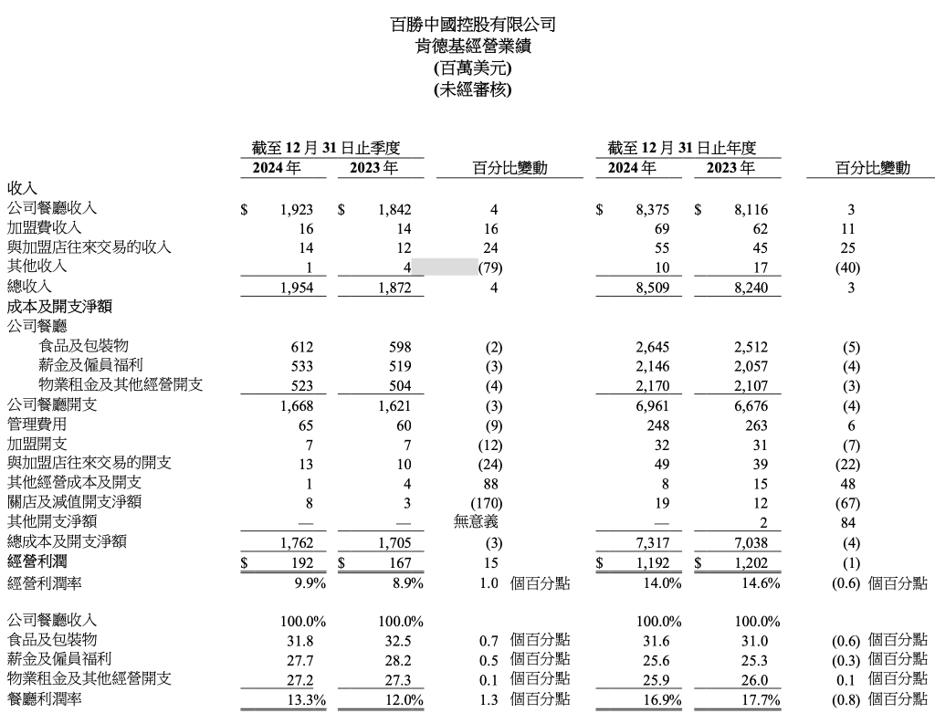 肯德基业绩数据