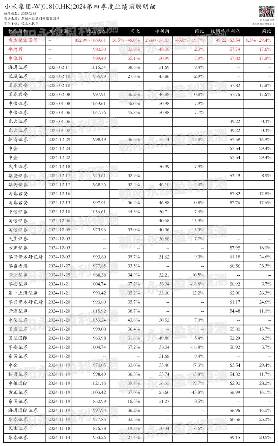 季度业绩前瞻 | 小米集团-W:家电创新升级,海外扩张,预测24年第四季度营业收入852.99亿元~1069.61亿元,同比增长16.5%~46.0%