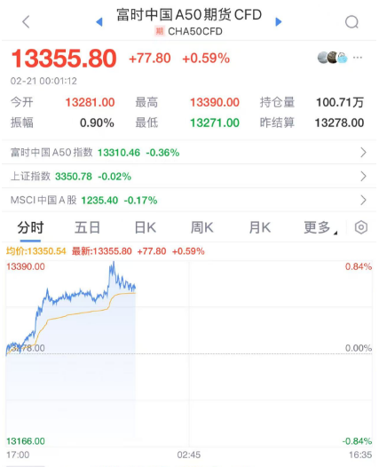 富时中国A50期货指数涨超0.6%。