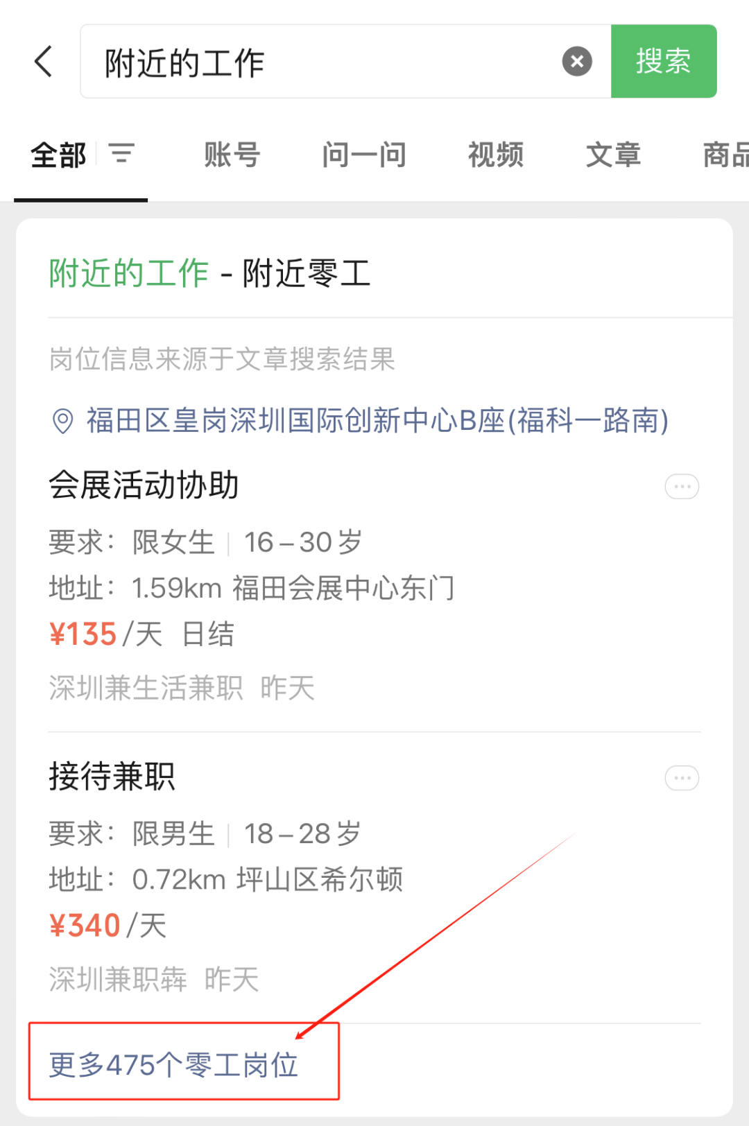 3月27日,“微信派”公众号发布微信新功能——“附近的工作”。在微信内搜索“附近的工作”“兼职”“日结”“零工”等关键词,就能自动匹配所在城市的零工,还能根据“距离”“薪资待遇”“性别”等快速筛选。
