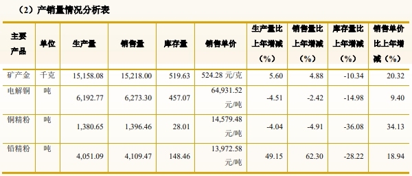 从产销表来看,赤峰黄金去年的产销量同比增幅均不大,主要还在于金价的大涨。财报显示,2024年赤峰黄金销售单价比上年增长20.32%,库存量较上年减少10.34%。