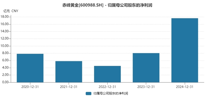 Wind数据显示,机构给出的一致性预测赤峰黄金2025年营收、归母净利润同比涨幅分别为20.85%、25.32%。这一业绩涨幅较2024年有明显下滑。