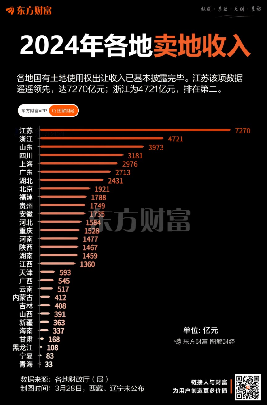 全国卖地收入出炉!江苏遥遥领先,浙江第二