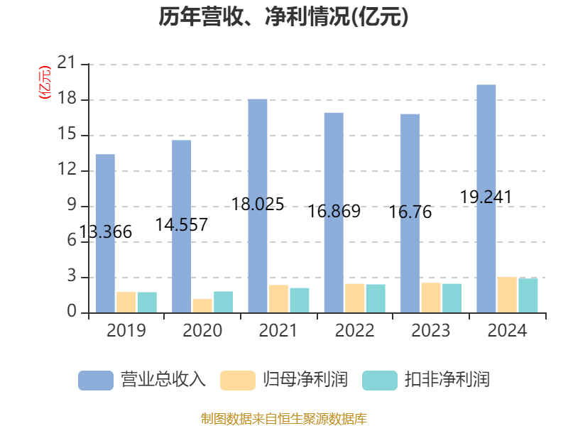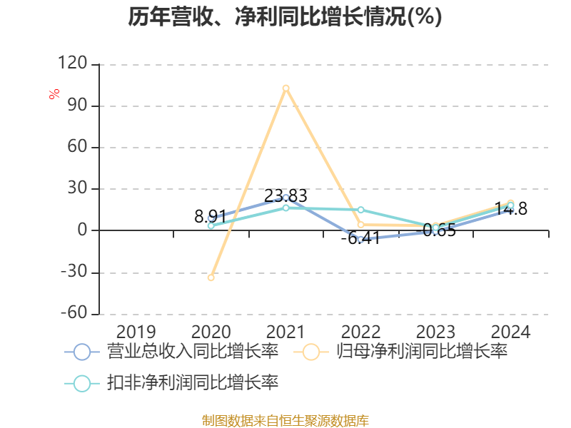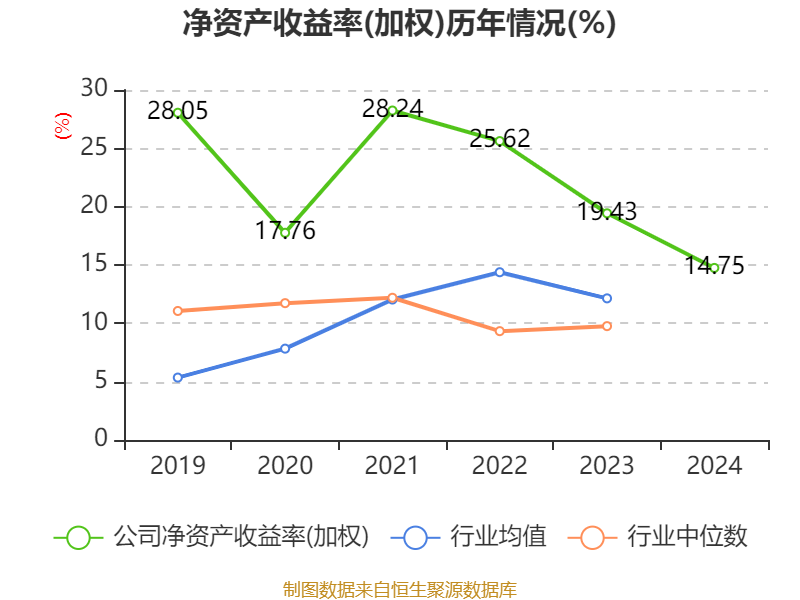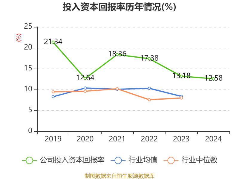 数据显示,2024年公司加权平均净资产收益率为14.75%,较上年同期下降4.68个百分点。公司2024年投入资本回报率为12.58%,较上年同期下降0.6个百分点。