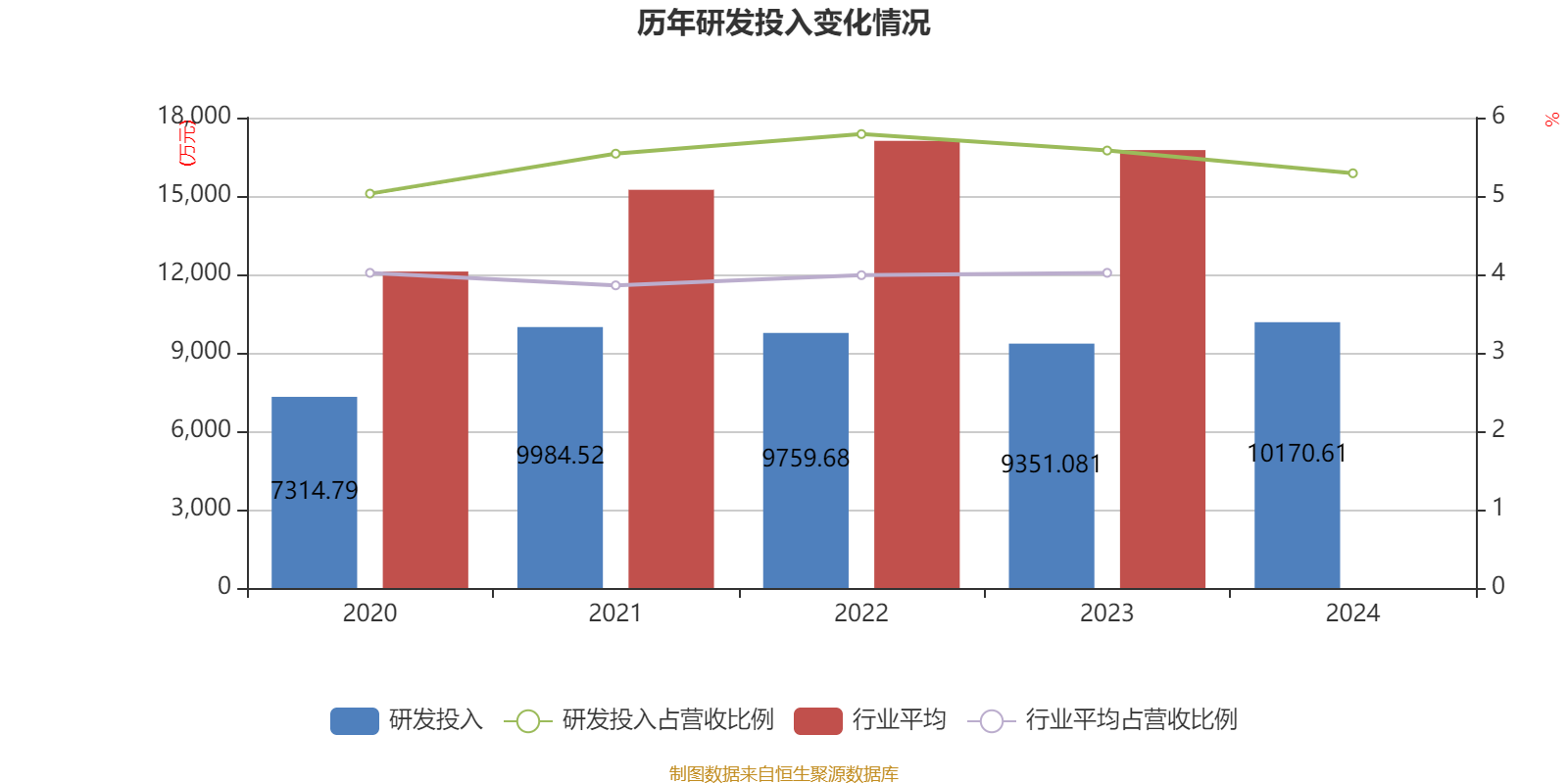 2024年全年,公司研发投入金额为1.02亿元,同比增长8.76%;研发投入占营业收入比例为5.29%,相比上年同期下降0.29个百分点。此外,公司全年研发投入资本化率为0%。