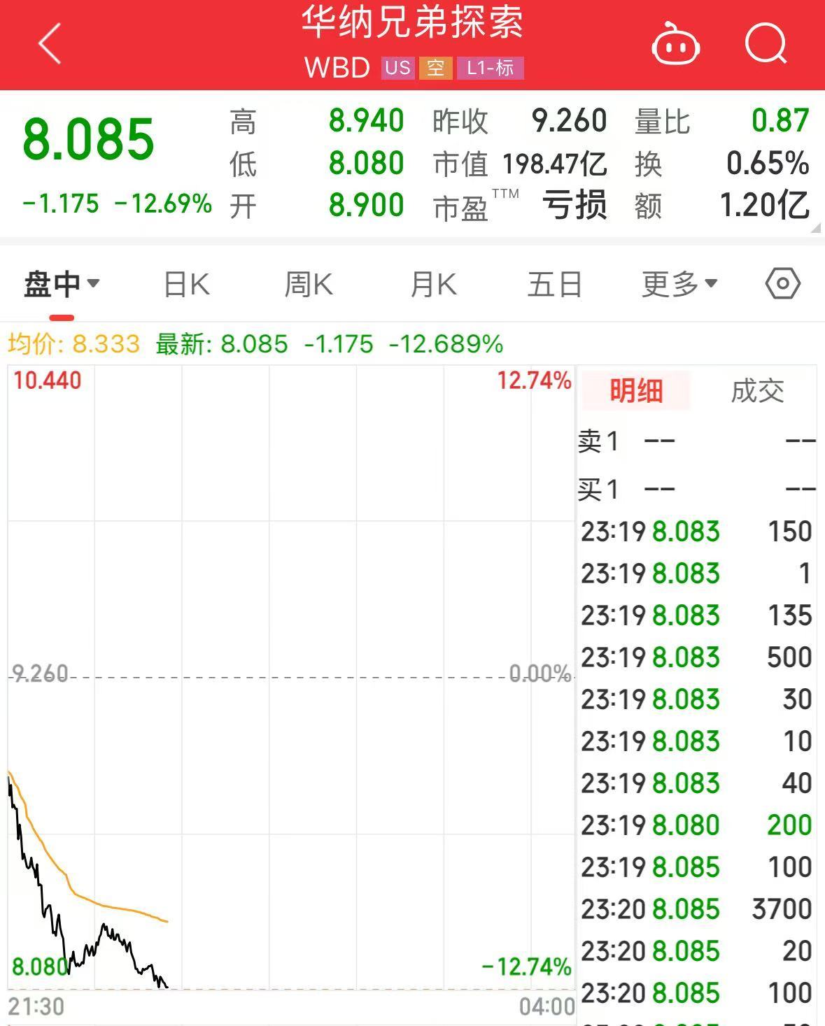 华纳兄弟探索跌超12%。