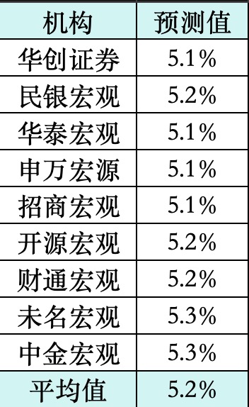近期,多家机构发布对于一季度经济增速的预测。据时代周报记者不完全统计,此次市场预测值较为统一,基本都在5.1%—5.3%之间,选取9家机构预测均值为5.18%。