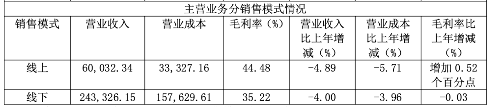 分渠道来看,去年千禾味业线上营收占比小幅提升至19.79%,线上毛利率同比提升0.52个百分点至44.48%,线下毛利率为35.22%,同比下滑0.03%。今年一季度线上模式营收下滑12.26%,线下销售下滑5.88%。