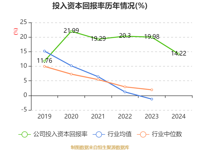 数据显示,2024年公司加权平均净资产收益率为17.95%,较上年同期下降3.78个百分点。公司2024年投入资本回报率为14.22%,较上年同期下降5.76个百分点。