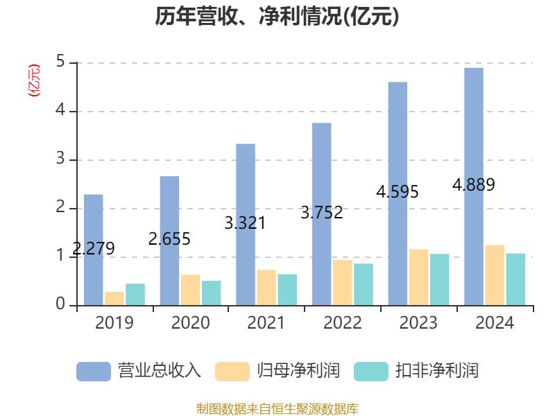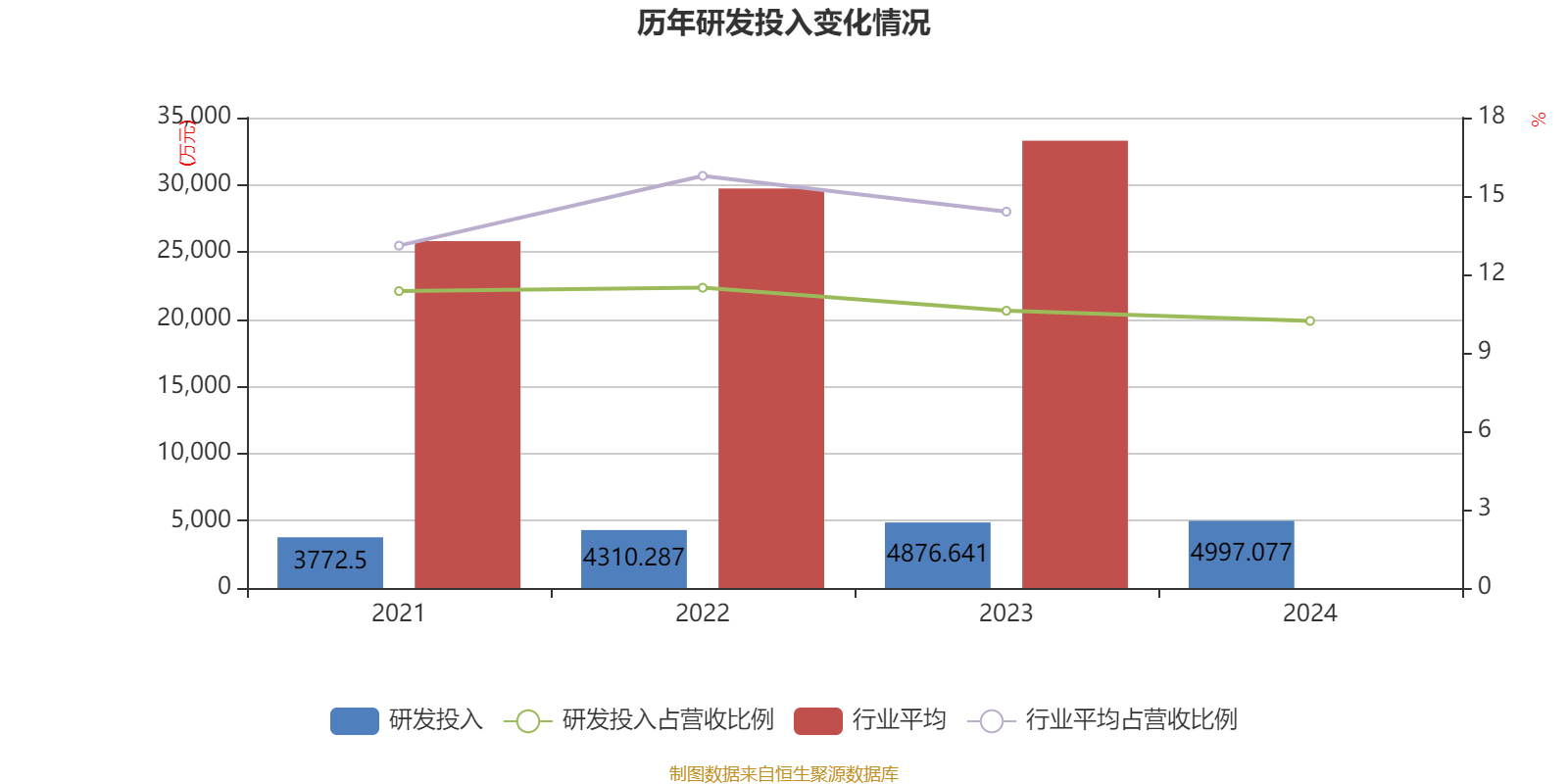 2024年全年,公司研发投入金额为4997.08万元,同比增长2.47%;研发投入占营业收入比例为10.22%,相比上年同期下降0.39个百分点。此外,公司全年研发投入资本化率为0%。
