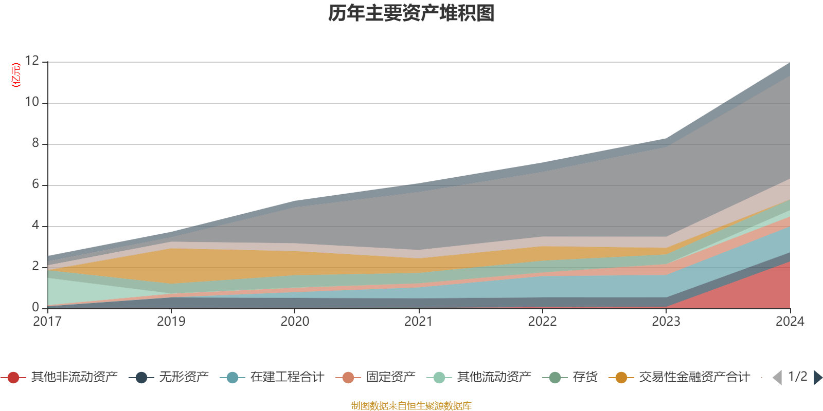 资产重大变化方面,截至2024年末,公司其他非流动资产较上年末增加3163.08%,占公司总资产比重上升18.15个百分点;货币资金较上年末增加14.93%,占公司总资产比重下降10.87个百分点;交易性金融资产合计较上年末减少100%,占公司总资产比重下降3.87个百分点;在建工程合计较上年末增加15.15%,占公司总资产比重下降2.71个百分点。