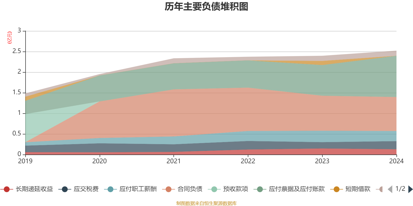 负债重大变化方面,截至2024年末,公司合同负债较上年末减少2.81%,占公司总资产比重下降3.38个百分点;应付职工薪酬较上年末减少11.07%,占公司总资产比重下降1.29个百分点;短期借款较上年末减少100%,占公司总资产比重下降1.21个百分点;长期递延收益较上年末减少13.46%,占公司总资产比重下降0.71个百分点。