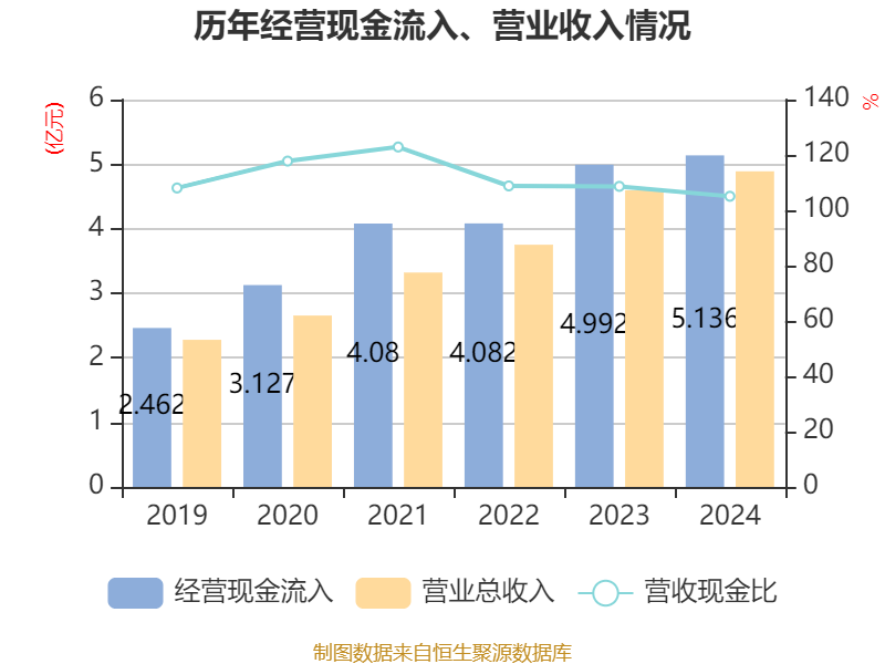 截至2024年,公司经营活动现金流净额为9495.22万元,同比下降18.91%;筹资活动现金流净额2.3亿元,同比增加2.23亿元;投资活动现金流净额-2.6亿元,上年同期为167.17万元。