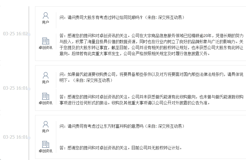 另外,每经资本眼研究员在翻阅投资者互动平台时也发现了一个有意思的提问,有多位投资者都在询问公司是否考虑被同花顺等机构收购的相关问题。