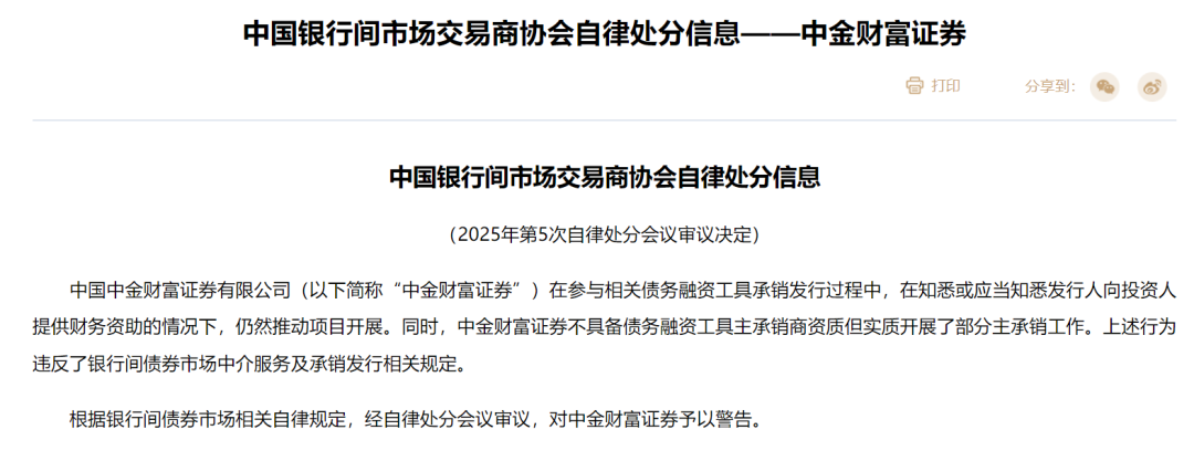 【导读】违反承销发行相关规定,中金财富证券被交易商协会警告