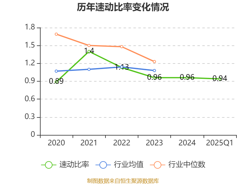 2025年第一季度,公司流动比率为1.07,速动比率为0.94。