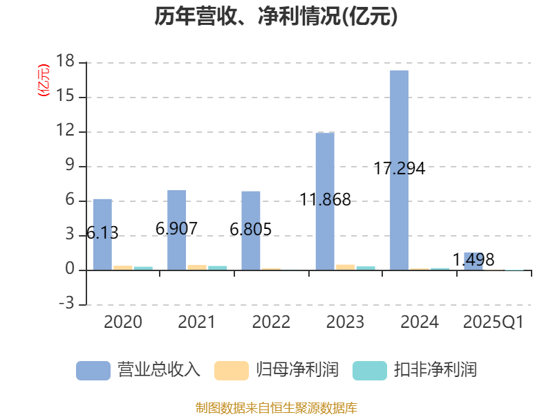 截至2025年一季度末,公司经营活动现金流净额为-1.62亿元,同比增加4086.35万元;筹资活动现金流净额6912.19万元,同比增加7298.58万元;投资活动现金流净额-497.92万元,上年同期为-1578.27万元。