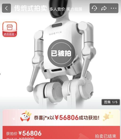值得一提的是,比赛之后的4月20日晚8点,京东拍卖举办了全国首场“人形机器人拍卖会”,活动海报上出现了N2机器人的身影。据公开报道,拍卖大约进行了30分钟,在经过21次出价之后,N2最终以56806元的价格成交。