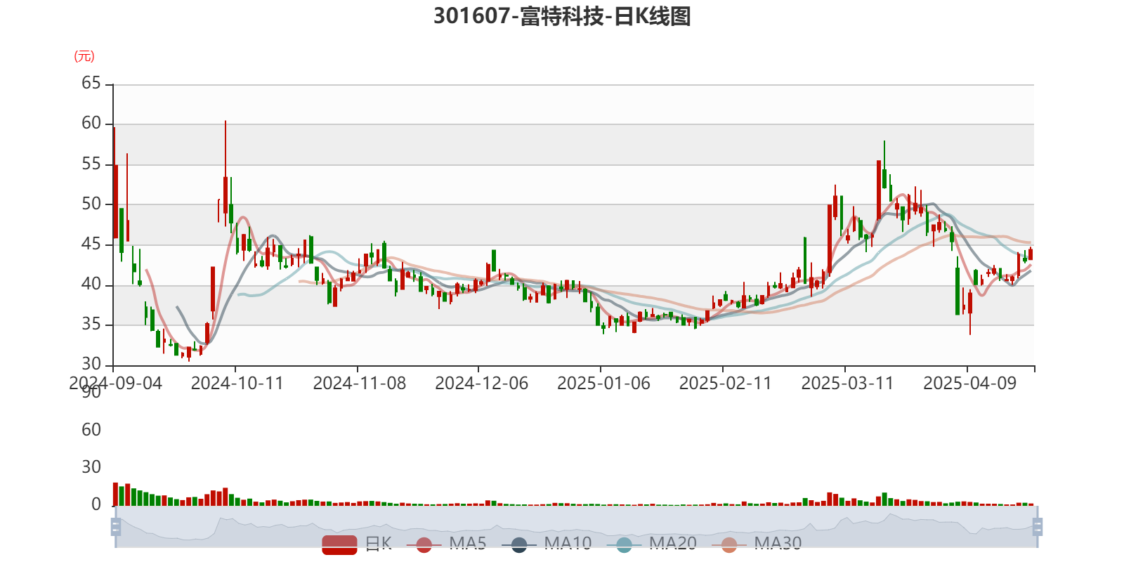 以4月23日收盘价计算,富特科技目前市盈率(TTM)约为52.1倍,市净率(LF)约4.93倍,市销率(TTM)约2.55倍。