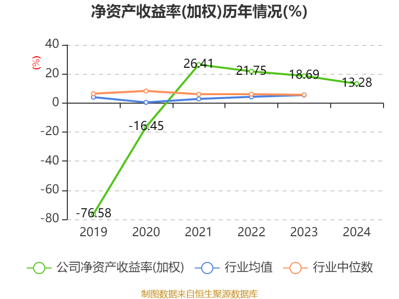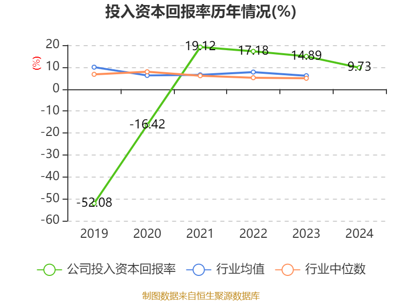 数据显示,2024年公司加权平均净资产收益率为13.28%,较上年同期下降5.41个百分点。公司2024年投入资本回报率为9.73%,较上年同期下降5.16个百分点。