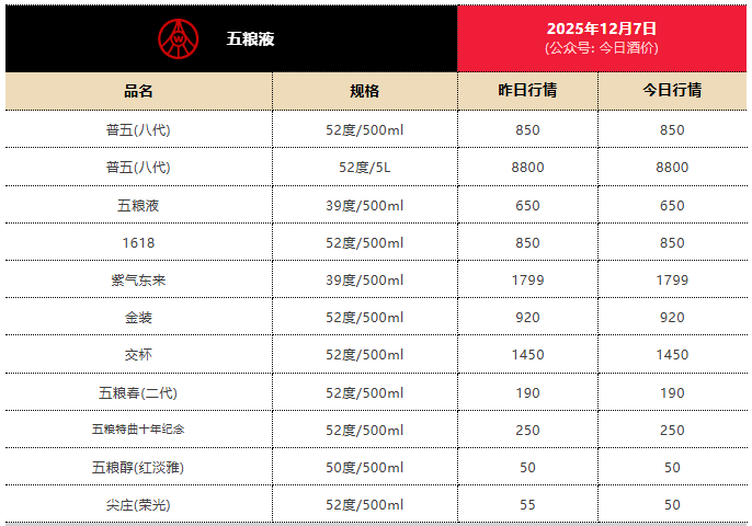 据中国新闻周刊报道,有白酒行业人士指出,今年以来,五粮液价格倒挂情况严重,下调开票价将有利于为渠道减负。但需要指出的是,即便按照新的开票价格计算,五粮液的市场流通价格依然处于倒挂状态。根据第三方酒价监测平台“今日酒价”,截至12月7日,500ml装的52度八代五粮液价格为850元/瓶。