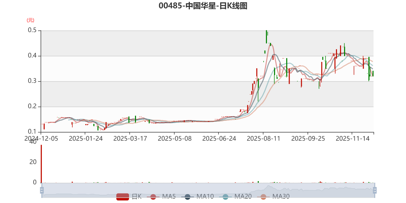 以12月5日收盘价计算,中国华星目前市净率(TTM)约0.39倍,市销率(TTM)约3.41倍。