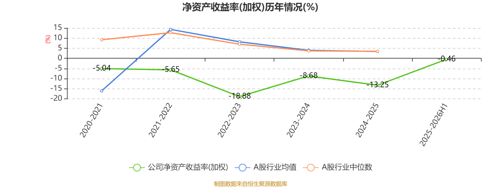 报告期内,公司平均净资产收益率为-0.46%,较上年同期上升1.35个百分点。