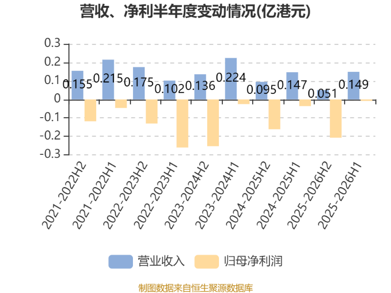 中证智能财讯中国华星(00485)12月5日披露2025-2026年中期报告。截至9月30日的6个月内,公司实现营业收入1485.8万港元,同比增长0.8%;归母净利润亏损79.6万港元,上年同期亏损358.8万港元;经营活动产生的现金流量净额为217.2万港元,同比下降3.51%;据报告显示,中国华星基本每股收益为-0.0037港元,平均净资产收益率为-0.46%。