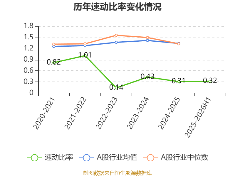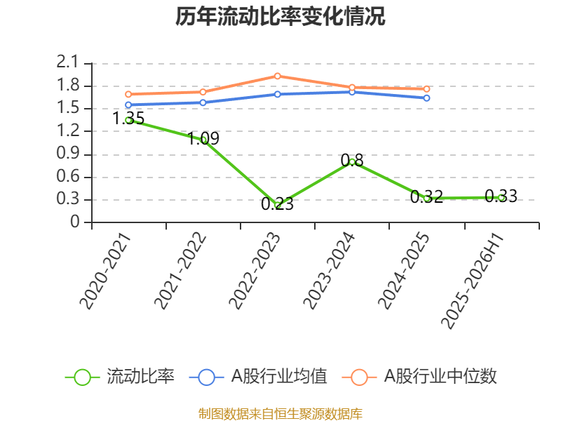 报告期内,公司流动比率为0.33,速动比率为0.32。