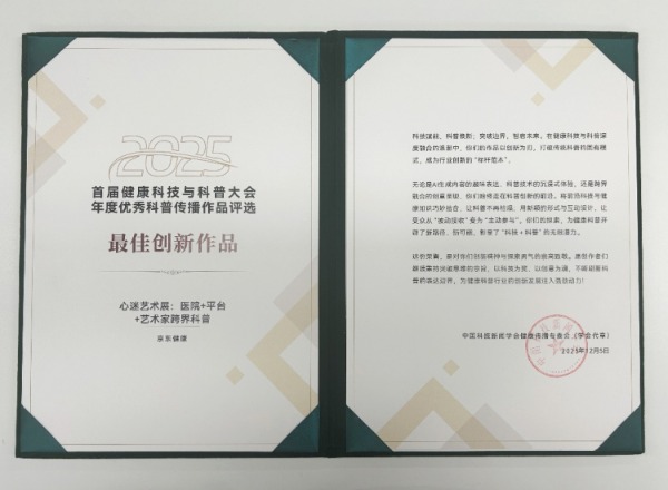 会上,京东健康携手武汉协和医院、武汉大学人民医院、武汉市精神卫生中心及知名艺术家、顶级专家共同打造的“心迷艺术展”,还斩获了大会年度优秀科普传播作品评选“最佳创新作品”奖。