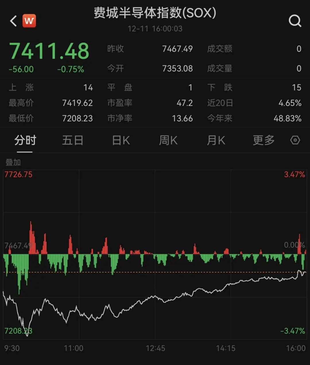 美东时间12月11日周四,美股三大指数收盘涨跌不一,道指再创历史新高。甲骨文财报再次引发市场对于科技股估值过高的担忧,大型科技股多数下跌。黄金上涨,白银和铜创新高。