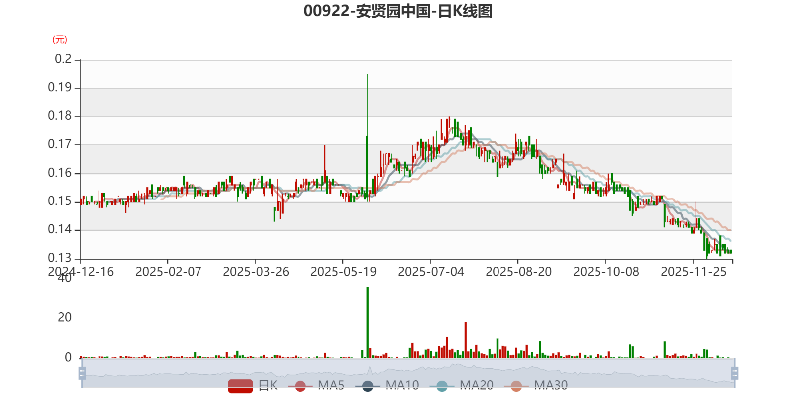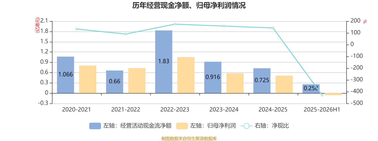 中证智能财讯安贤园中国(00922)12月15日披露2025-2026年中期报告。截至9月30日的6个月内,公司实现营业收入9849.9万港元,同比下降3.72%;归母净利润亏损601万港元,上年同期盈利1738.2万港元;经营活动产生的现金流量净额为2579.7万港元,同比增长100.43%;据报告显示,安贤园中国基本每股收益为-0.0027港元,平均净资产收益率为-0.65%。
