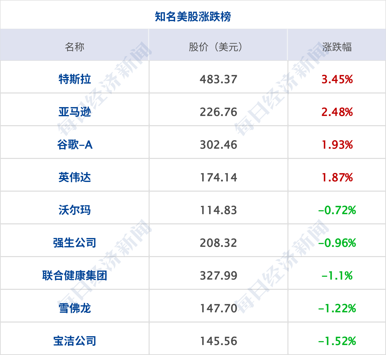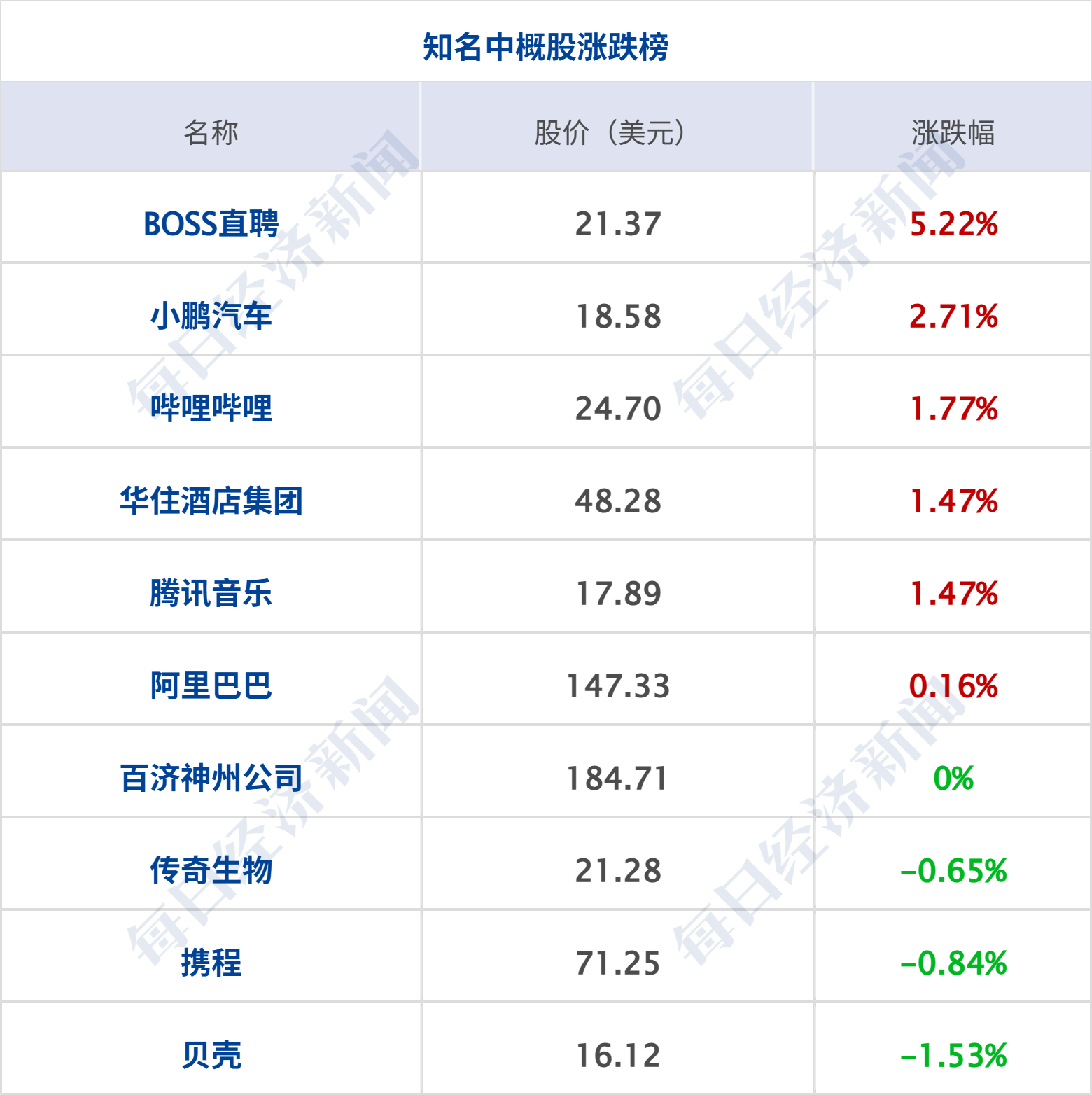 美股三大指数集体收涨,道指涨0.14%;纳指涨超310点,涨幅为1.38%;标普500指数涨0.79%。大型科技股普涨,特斯拉涨超3%,亚马逊、脸书涨超2%,谷歌、英伟达涨近2%,微软涨超1%,美光科技涨10%。特朗普媒体科技集团大涨41.9%。纳斯达克中国金龙指数涨0.97%,BOSS直聘涨超5%,小鹏汽车涨近3%,禾赛科技涨近3%,万国数据涨超2%;名创优品跌超2%,贝壳跌逾1%;叮咚买菜跌超7%。