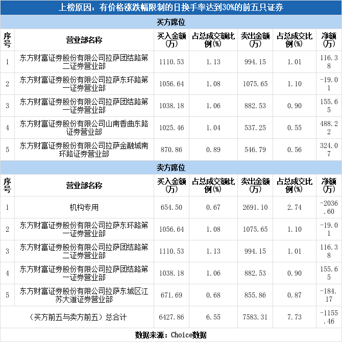 龙虎榜数据显示,今日卖一为机构席位,该席位净卖出2036.60万元,占龙虎榜净卖额的176.26%。