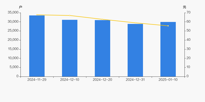 截至2025年1月10日,公司最新总股本为4.36亿股,其中流通股本为5639.81万股。户均持有流通股数量由上期的1953股下降至1883股,户均流通市值10.48万元。