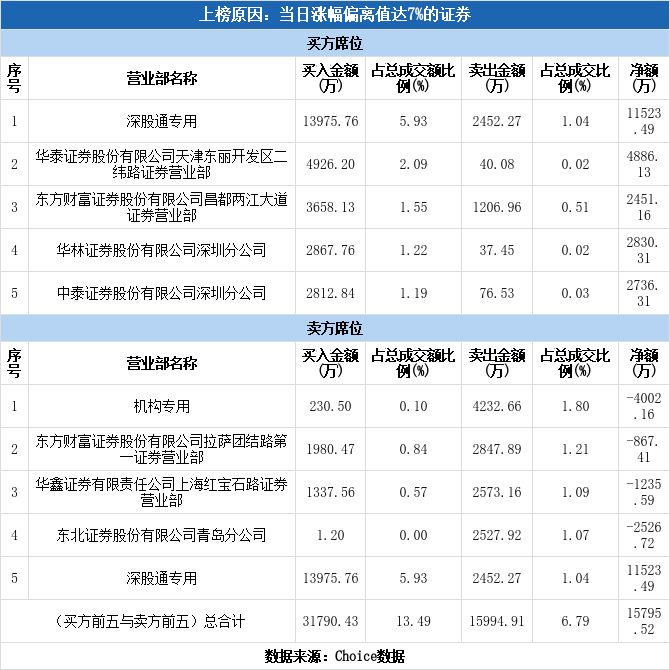 今日龙虎榜单上出现了深股通的身影,占据了买一、卖五的位置,净买入1.15亿元,占当日成交总额的4.89%。