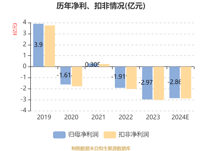 中证智能财讯康欣新材(600076)1月15日晚间披露2024年度业绩预告,预计2024年归母净利润亏损2.86亿元,上年同期亏损2.97亿元;扣非净利润亏损2.89亿元,上年同期亏损3.01亿元。以1月15日收盘价计算,康欣新材目前市盈率(TTM)约为-9.26倍,市净率(LF)约0.63倍,市销率(TTM)约4.14倍。