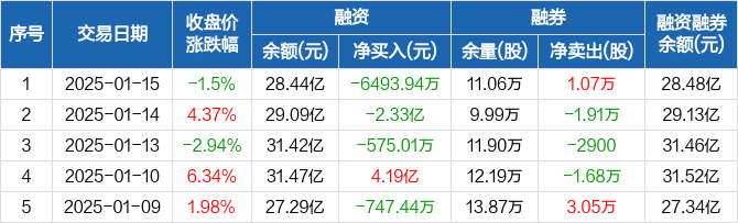长电科技融资融券信息显示,2025年1月15日融资净偿还6493.94万元;融资余额28.44亿元,较前一日下降2.23%。
