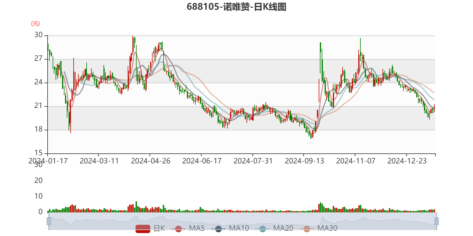 中证智能财讯诺唯赞(688105)1月16日晚间披露2024年度业绩预告,预计2024年归母净利润亏损1200万元至2000万元,上年同期亏损7095.62万元;扣非净利润亏损7700万元至8500万元,上年同期亏损1.93亿元。以1月16日收盘价计算,诺唯赞目前市盈率(TTM)约为-418.02倍至-696.7倍,市净率(LF)约2.11倍,市销率(TTM)约5.96倍。