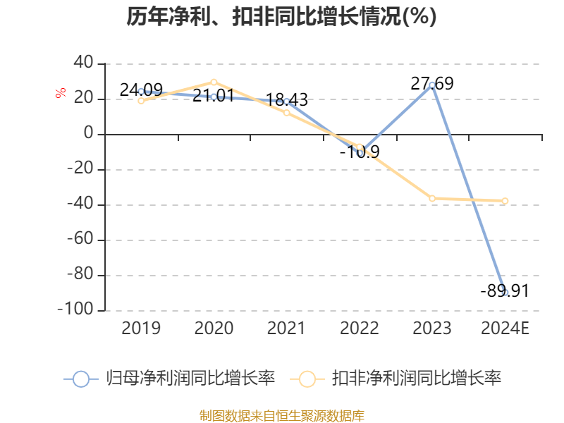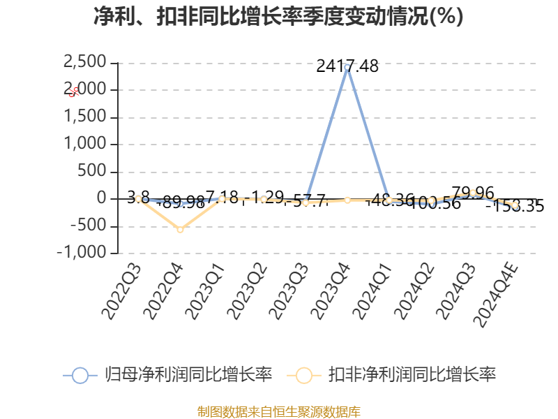 据公告,公司业绩变动原因为, 公司对安邦护卫集团股份有限公司的股权投资采用公允价值计量,其股价波动导致公司持有的其他非流动金融资产公允价值变动较大,本期确认公允价值变动损益-5306.45万元,减少公司当期净利润3979.84万元,而2023年度确认公允价值变动损益11724.97万元,增加公司2023年度净利润8793.73万元,即因该事项导致公司2024年度归属于母公司所有者的净利润同比下降12773.57万元。