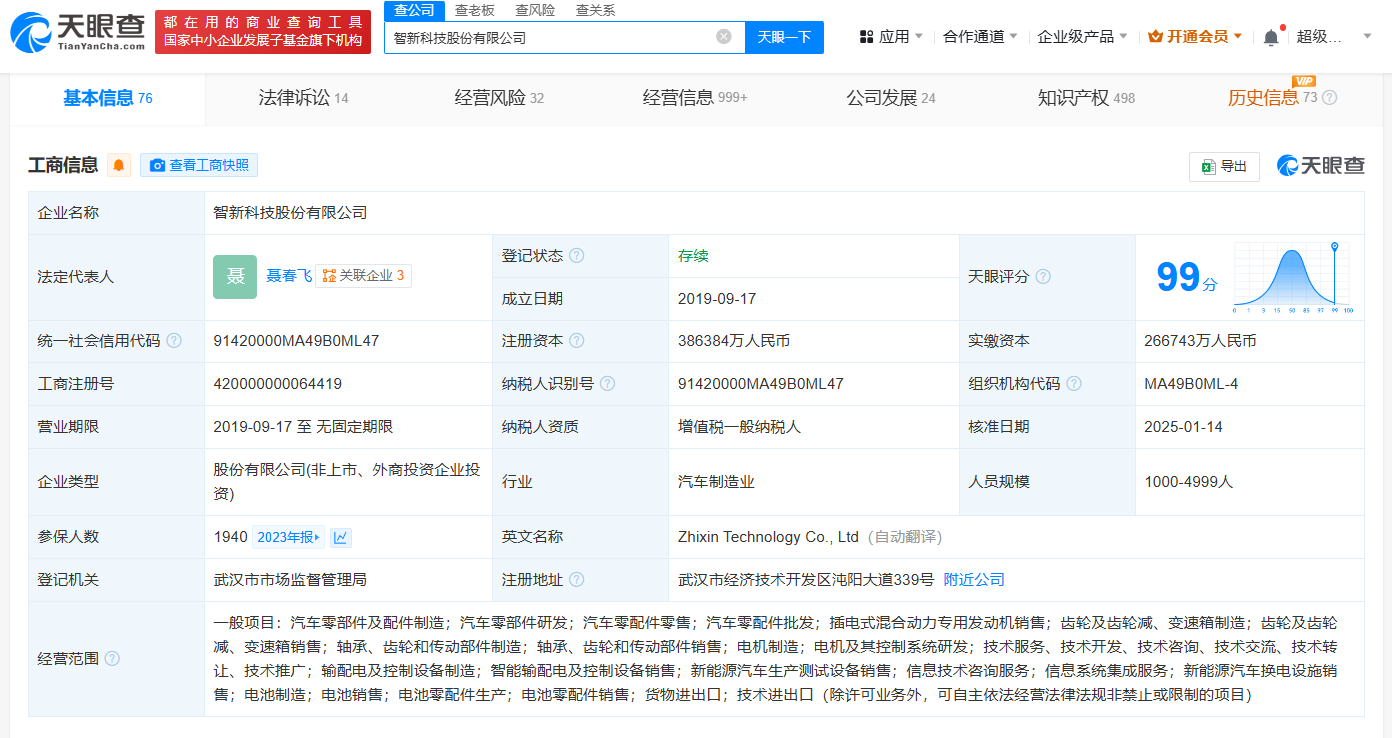 南方财经1月17日电,天眼查App显示,近日,智新科技股份有限公司发生工商变更,夏晓川卸任法定代表人,陈昊卸任董事长,均由聂春飞接任,多位高管也发生变更;同时,注册资本由约26.67亿人民币增至约38.64亿人民币。该公司成立于2019年9月,经营范围包括汽车零部件及配件制造、汽车零部件研发、插电式混合动力专用发动机销售等,由东风汽车集团股份有限公司、东风鸿泰控股集团有限公司、武汉经开金融发展有限公司共同持股。