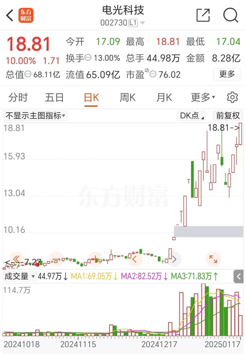 市场情绪和游资参与也是推动电光科技股价剧烈波动的重要因素。在股价上涨过程中,知名游资介入进一步加剧了股价的波动性。游资的炒作行为往往能在短期内迅速推高股价,但也增加了股价回调的风险。