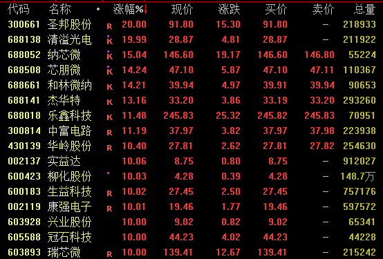 半导体、芯片股盘中大幅拉升,截至收盘,圣邦股份、清溢光电20%涨停,纳芯微涨超15%,乐鑫科技等涨超10%,实益达、柳化股份、康强电子、瑞芯微等多股涨停;中芯国际A股涨超6%,全日成交超110亿元,位居A股成交额第二位。