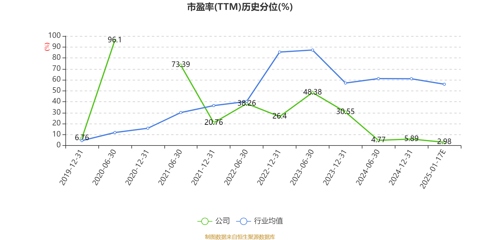 市盈率、市净率为负时,不显示当期分位数,会导致折线图中断。