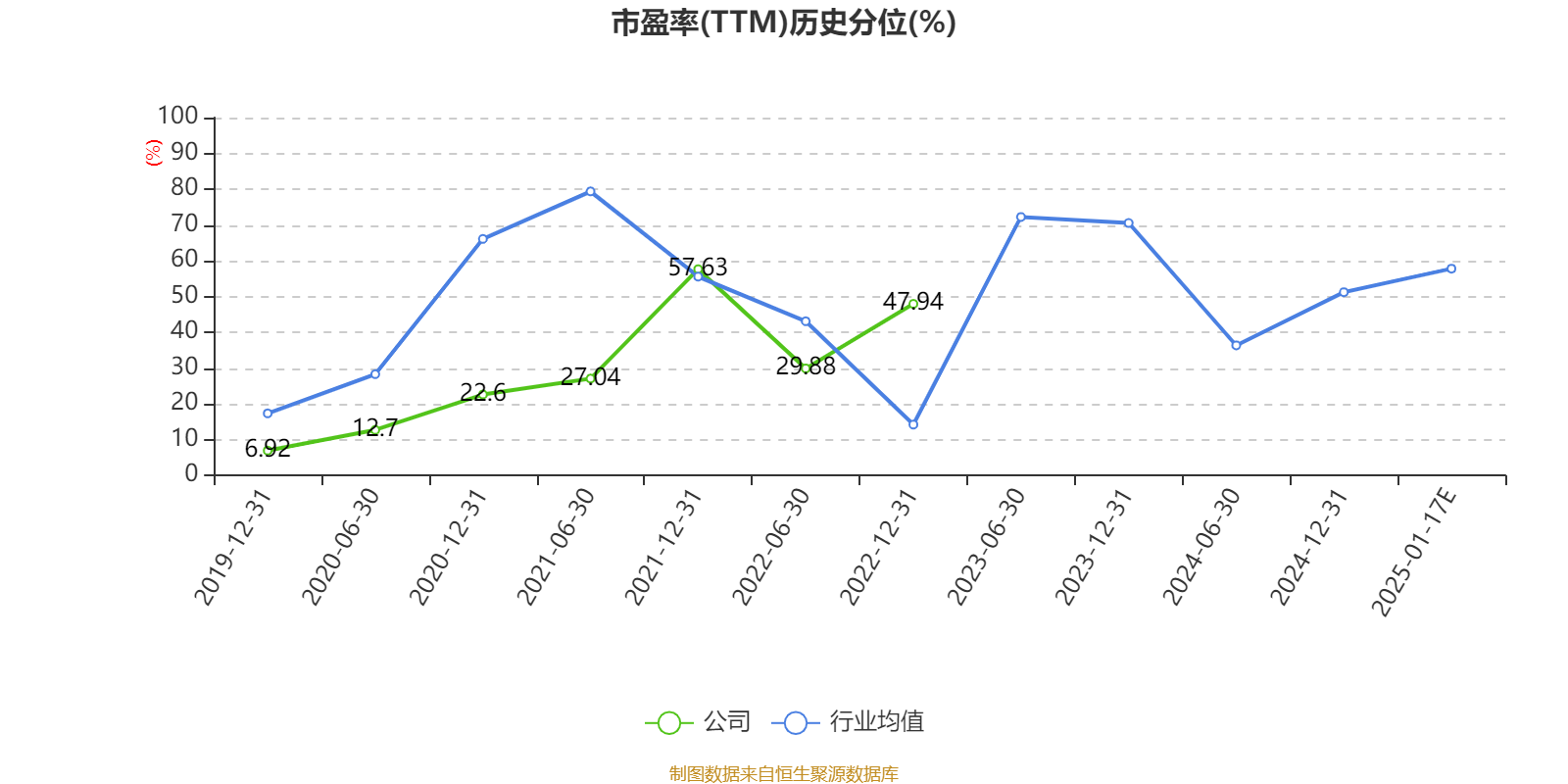 以本次披露业绩预告均值计算,公司近年市盈率(TTM)图如下所示: