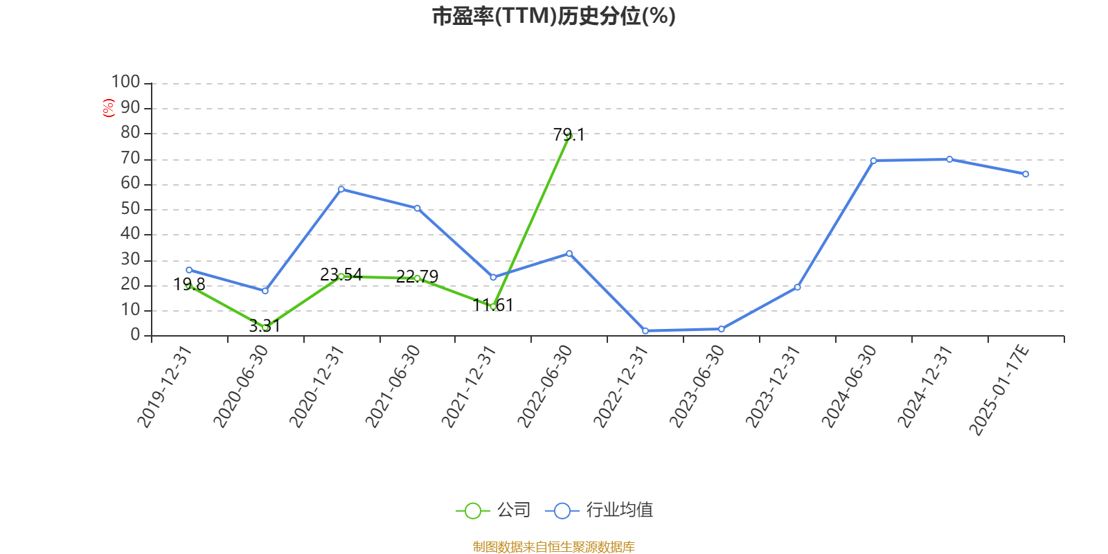 以本次披露业绩预告均值计算,公司近年市盈率(TTM)图如下所示: