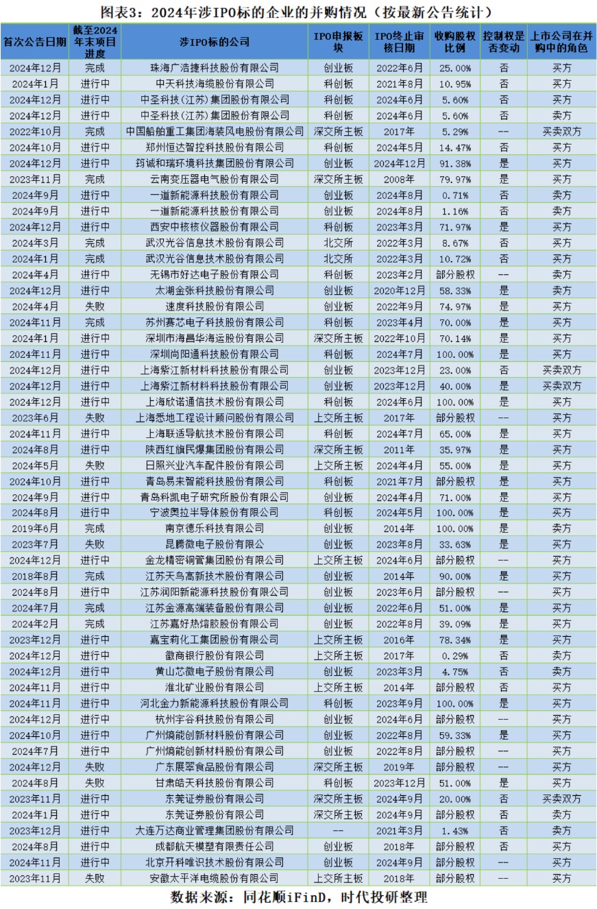 2024年,尽管A股IPO市场注册发行遇冷,但积极推动了上市公司对那些具有A股IPO申报历史的企业的并购交易热度。