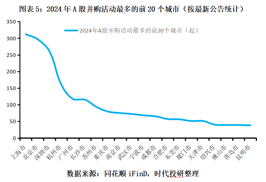 上海市、北京市则分别以312起、297起的并购交易数量位列第四、第五。