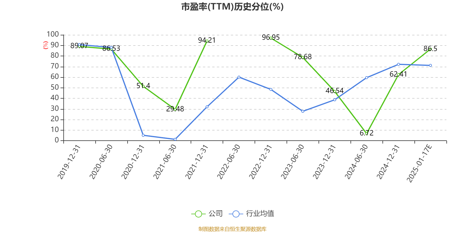 以本次披露业绩预告均值计算,公司近年市盈率(TTM)图如下所示: