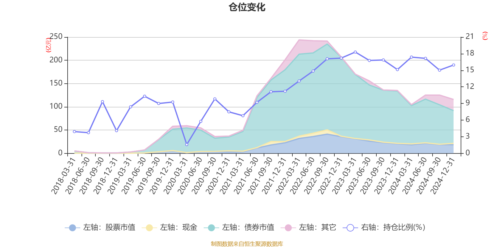 据定期报告数据统计,近三年平均股票仓位为16.23%,同类平均为18.59%。2023年一季度末基金达到18.29%的最高仓位,2020年一季度末最低,为1.58%。